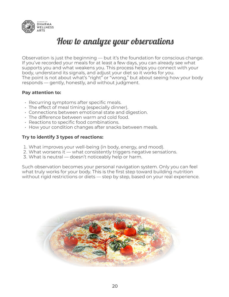 - Helps you spot recurring patterns in digestion, energy, mood, and recovery