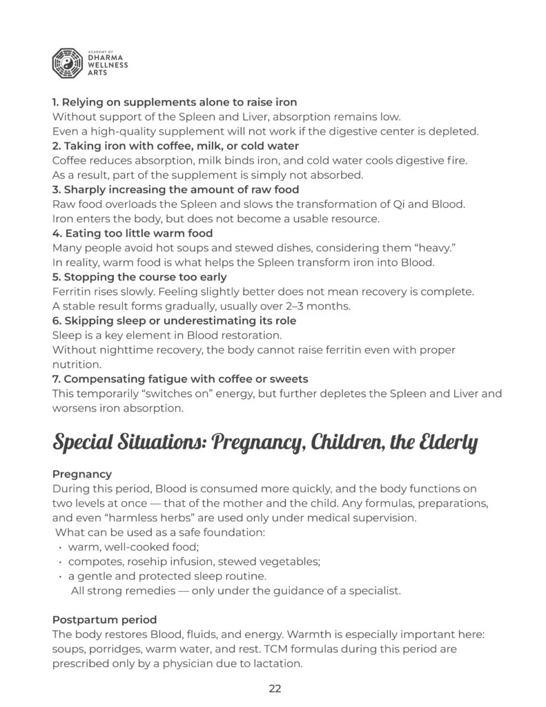 • Specific guidance for nutrition and lifestyle in the context of iron replenishment — without universal “one-size” rules